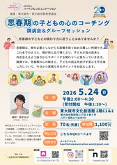 | 日時 | 2026年5月24日(日) 受付開始13時30分 第1部:講演会 14時~15時45分 第2部:グループセッション 15時50分~16時30分 |